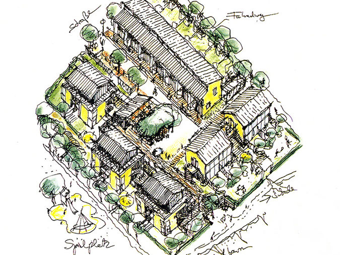 „Das Wohnprojekt ist ein wichtiger Baustein des gleichnamigen Stadtentwicklungsprojektes, das sich auf einem ehemaligen Bahngelände befindet und dieses mit neuen Nutzungen versieht. Die zertifizierte Klimaschutzsiedlung wurde durch eine Genossenschaft mit dem Ziel erstellt, gemeinschaftliches und generationsübergreifendes Wohnen in möglichst individuellen Formen zu günstigen Preisen zu realisieren. Auffällig ist hierbei der besondere Stellenwert der Freianlagen: Vier Häuser im Westen umschließen einen gemeinschaftlichen Hof, von dem alle Wohnungen erschlossen werden. Im Osten ergänzen zwei weitere Gebäude das Ensemble, das von einer öffentlichen Grünfläche durchzogen wird. Die gesamte Anlage weist mit ihren durchgehend weißen Fassaden eine angenehme Zurückhaltung auf, die Einheitlichkeit unterstützt den beabsichtigten Gemeinschaftsgedanken. Die in den Gestaltungsleitlinien der Bahnstadt Opladen festgelegten Ziegelflächen im Sockelbereich setzen hierbei wohltuende Akzente. Den Architekten ist es gelungen, eine Siedlung zu schaffen, die städtebaulich wohlproportioniert und mit einer lebendigen Fensteranordnung versehen ist. (…) Der Beitrag stellt ein positives Beispiel für ein gelungenes Wechselspiel von Städtebau, Architektur und Freiraum dar und ist auch auf Grund der Beachtung bauökologischer Belange in der Lage, positive Impulse für zukünftige vergleichbare Projekte zu liefern.“